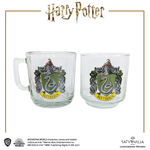 Pack de taza y vaso de vidrio modelo Slytherin a color, de Harry Potter!